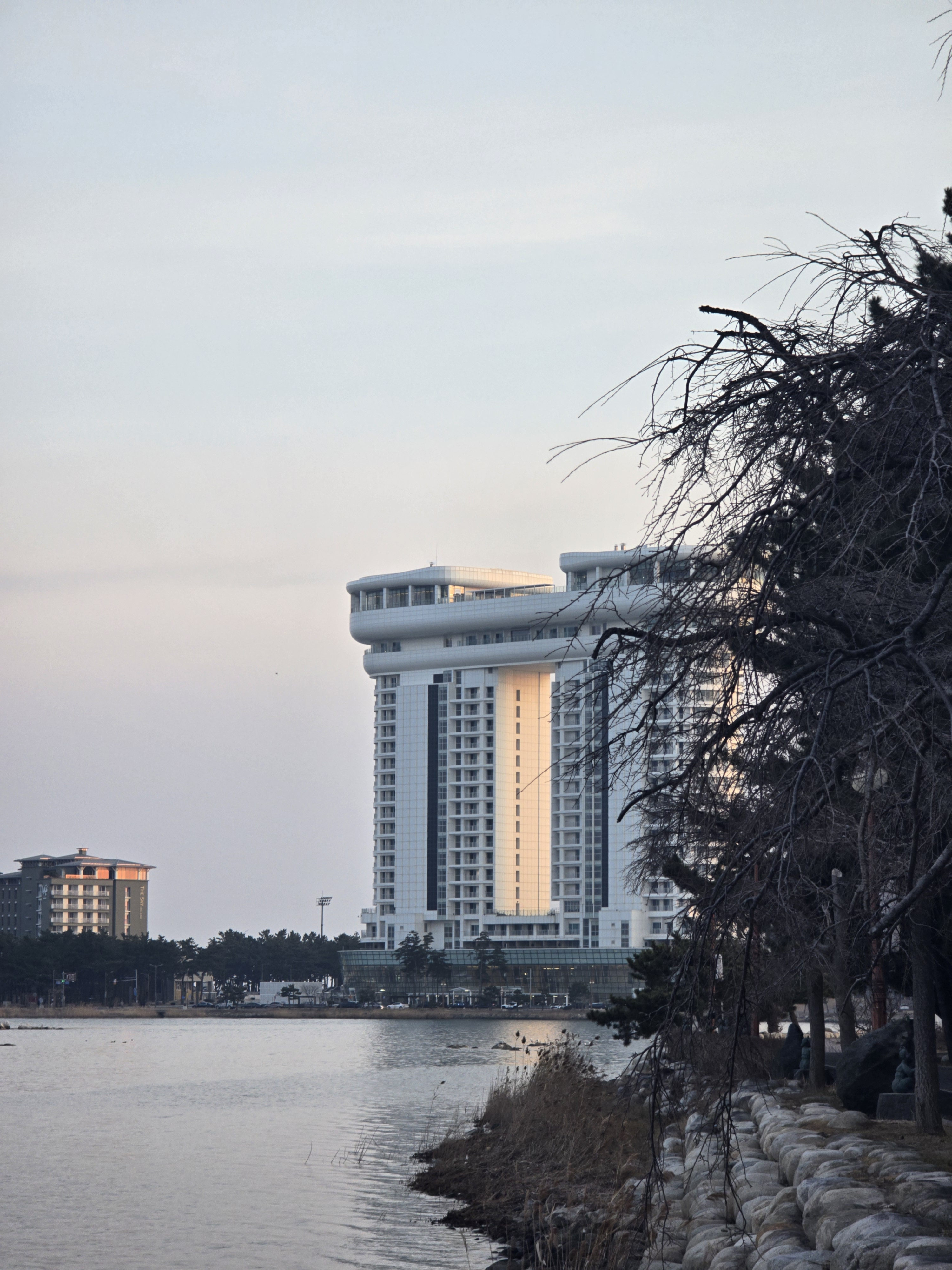 노을빛이 하얀 건물에 스며든 순간, 낯선 도시의 풍경이 조용한 위로가 되었다. 아무도 없기에 더 깊이 남는 저녁의 온기. 사람이 없는 풍경이 유난히 따뜻하게 느껴질 때가 있다.아무도 없지만, 그 자리에 머물고 싶은 기분이 드는 날이 그렇다. 겨울 끝자락의 어느 저녁, 낯선 도시의 물가를 따라 걷는다.말없이 마주하는 바람, 바스락거리는 마른 갈대, 고요한 수면.모든 게 멈춘 듯하지만, 멈추지 않은 채 흘러가고 있었다. 눈에 들어온 것은 저 멀리 우뚝 선 하얀 건물.모서리마저 곡선으로 말아 쥔 모습이,딱딱한 콘크리트라기보단 잠시 머물러도 좋을 포근함처럼 느껴졌다.그리고 마침 해가 지는 순간, 창문을 따라 수직으로 빛이 스며든다.햇살이 건물을 타고 흘러내리는 그 장면은,이 도시가 그저 낯설기만 한 곳이 아님..