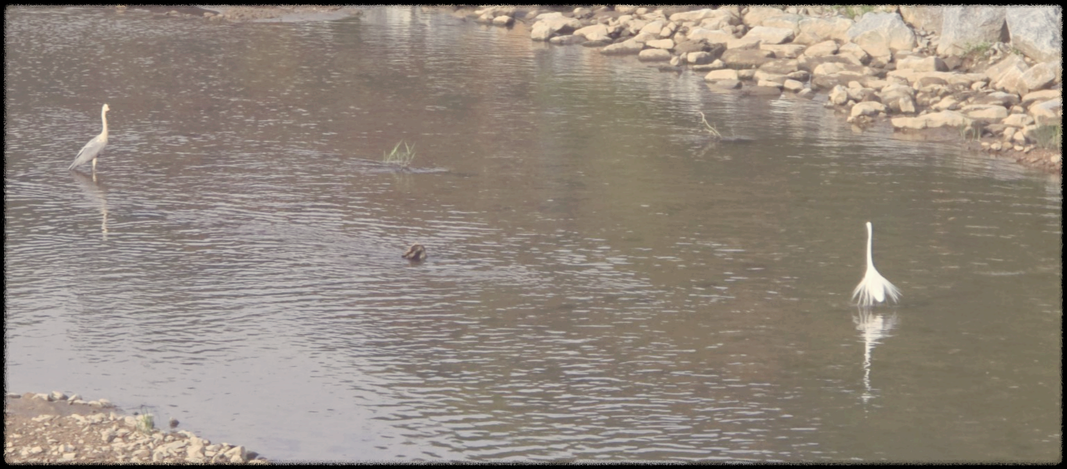 그리고 또 한 쪽, 물 위에 서 있는 하얀 백로는