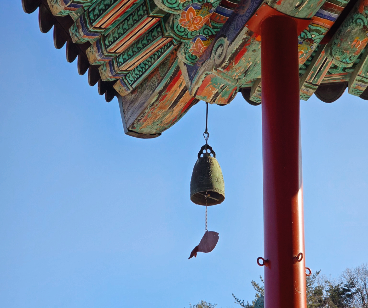 풍경은 바람이 불어야만 울린다. 고요한 그 울림처럼, 우리도 때로는 조용히 흔들리고 울 수 있는 존재라는 걸 기억하자. 맑고 푸른 하늘 아래, 전통 목조건물의 처마 끝에 매달린 작은 풍경 하나.아무 소리도 들리지 않지만, 마치 바람이 전해주는 이야기를 듣는 것처럼마음이 고요해진다.해를 머금은 단청과 세월을 머금은 종이 어우러져묵묵한 시간을 견뎌온 흔적이 보인다. 이 풍경은 바람이 불어야만 소리를 낸다.스스로 울지 않고, 지나가는 것에 기대어 조용히 흔들릴 뿐이다.그 모습이 마치 우리네 마음 같다.무엇에 의해 흔들리고, 울림이 생기는 순간에야비로소 ‘나’라는 존재를 깨닫는 듯하다. 붉은 기둥과 화려한 단청이 대비를 이루는 이곳.자세히 보면 수많은 색이 층층이 쌓여 있다.그 하나하나가 예전 장인의 손길로..