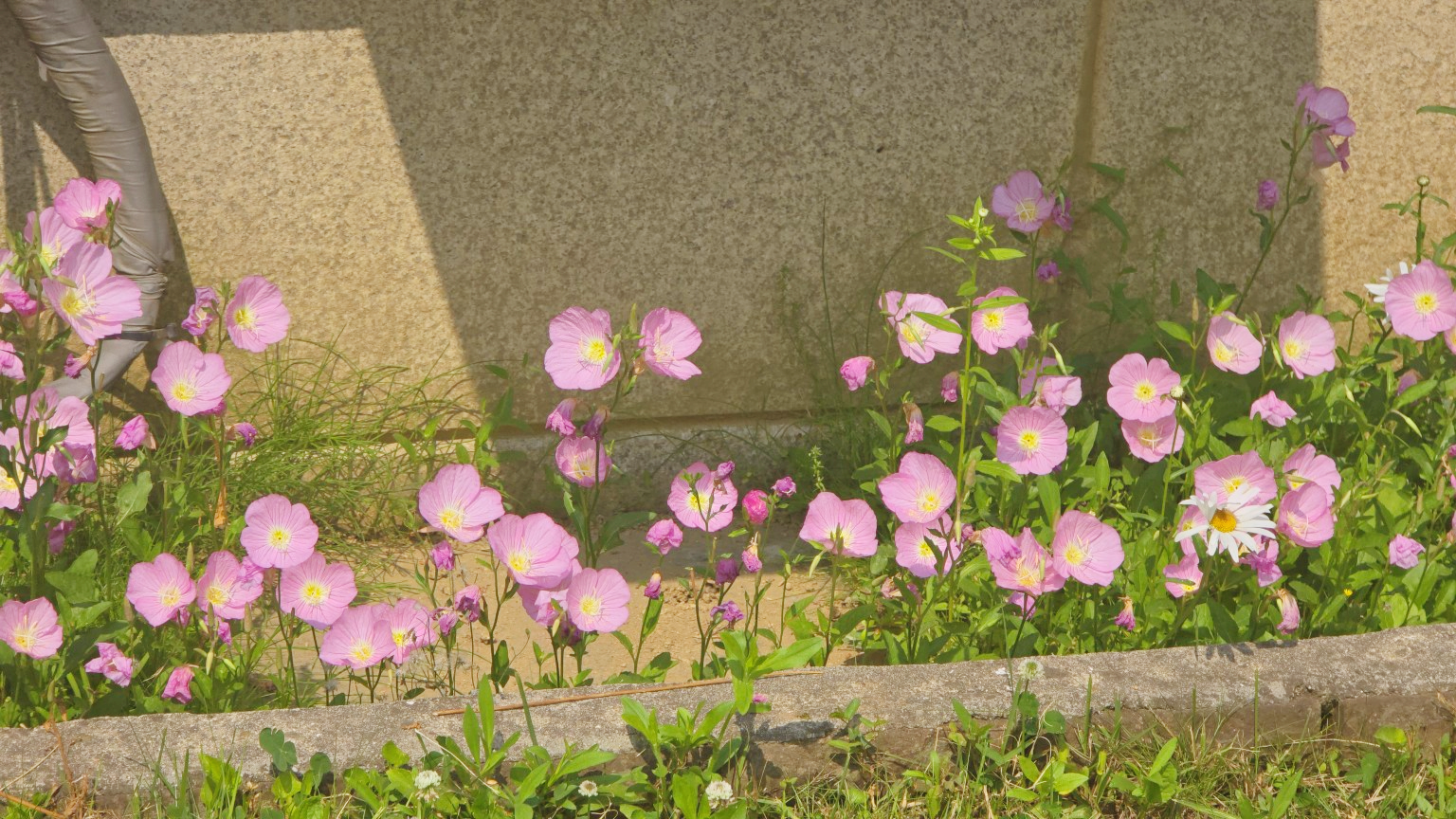 콘크리트 옆, 조용히 피어난 분홍의 속삭임