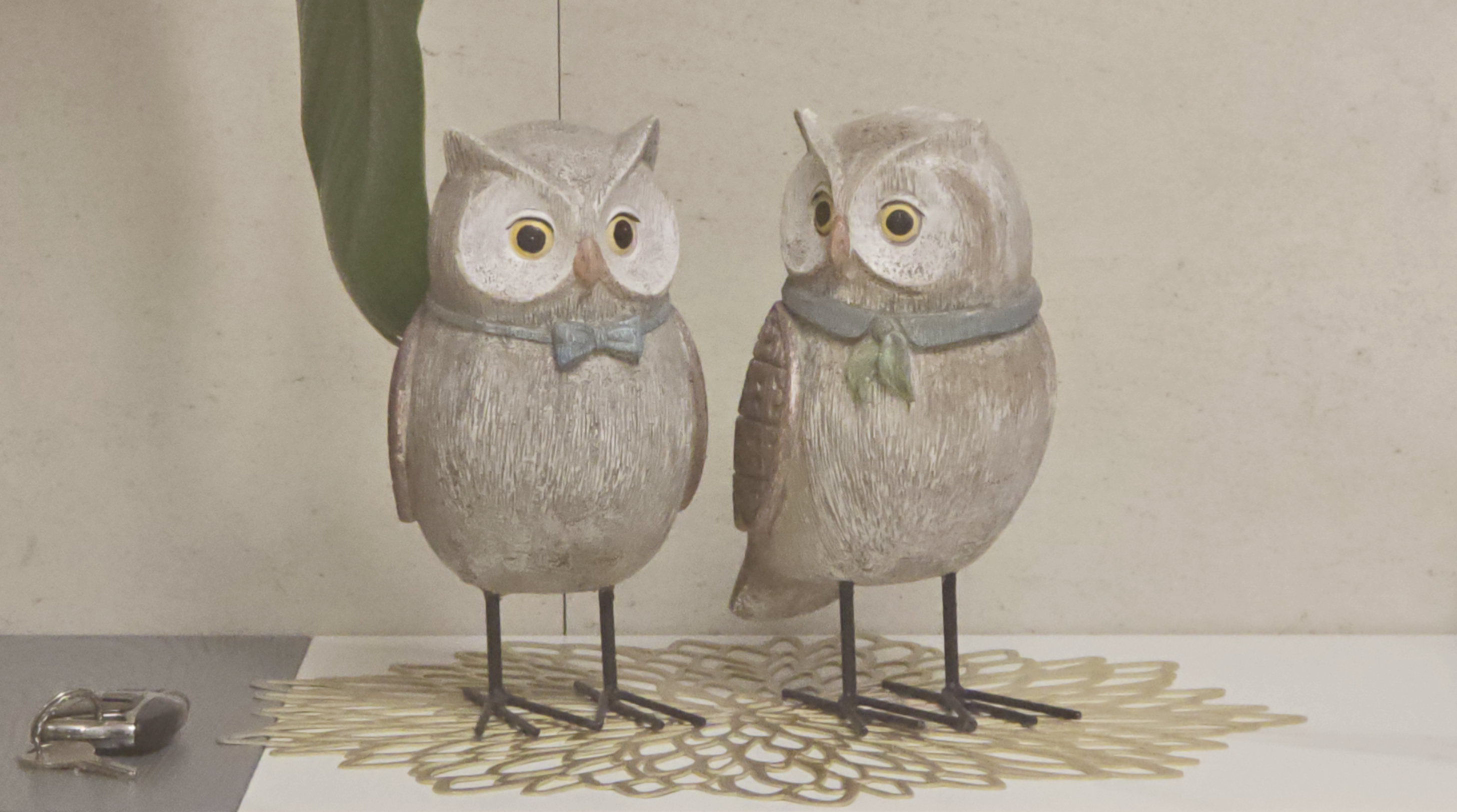 하늘색과 초록색 나비넥타이를 맨 두 마리의 올빼미. 말없이 마주 선 그 모습에서 닮은 듯 다른 따뜻한 관계를 떠올린다. 벽 앞 작은 선반 위,두 마리의 올빼미 인형이 나란히 서 있다.서로를 향해 고개를 살짝 돌린 채,눈동자는 마주치진 않았지만마음은 이미 닿아 있는 듯한 표정이다. 왼쪽의 올빼미는 하늘색 나비넥타이를,오른쪽의 올빼미는 짙은 초록색 리본을 매고 있다.묘하게 다르지만 또 너무나 닮은 모습.무언가 말하지 않아도서로를 충분히 이해할 것만 같다. 이 작은 인형들은 단지 장식품일 뿐인데도이상하게 사람의 마음을 건드린다.어쩌면 누군가를 떠올리게 해서일까.닮은 듯 다른 두 사람이함께 시간을 보내던 어떤 날이 생각나서일까. 어느 날엔 다투기도 하고,어느 날엔 아무 말 없이 옆에 앉아 있기도 했다.하지만 ..