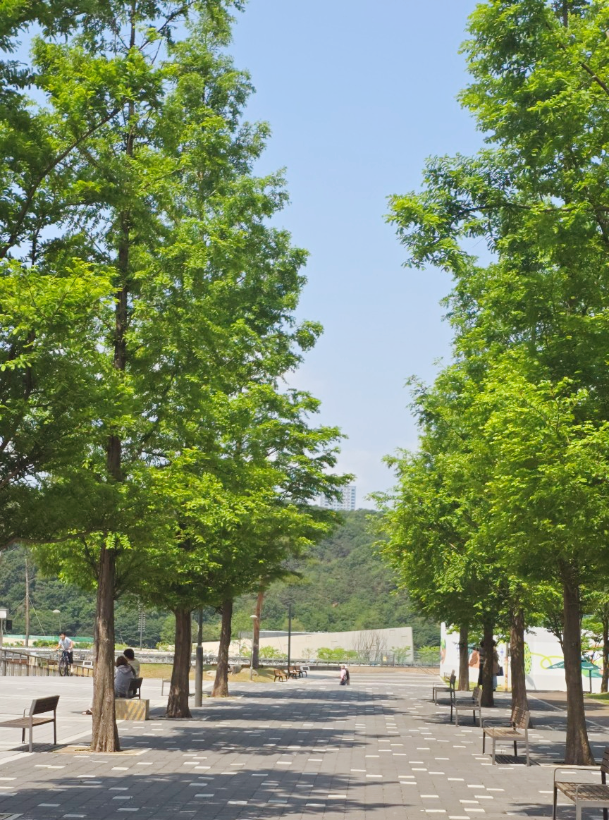 햇살과 초록이 어우러진 산책길. 나무 그늘과 바람, 그리고 조용한 벤치 위에서 삶의 쉼표를 발견하는 순간을 담았다. 가끔은 아무 목적 없이그저 걷고 싶은 날이 있다. 그럴 땐 이 길이 생각난다.규칙적으로 심어진 나무들이마치 초록빛 병정을 연상시키며그늘과 빛 사이를 오가는 리듬을 만든다. 햇살은 나무 사이를 조용히 스며들고바람은 살짝만 얼굴을 스친다.그 순간, 세상이 잠깐 멈춘 것처럼 느껴진다. 바닥엔 흰색 타일이 점점이 박혀걷는 이의 발걸음마다 작은 박자를 만든다.이 길은 무심한 듯 다정하고조용하지만 분명한 위로를 건넨다. 벤치에 앉은 사람들의 모습도 좋다.책을 읽는 이, 조용히 통화를 하는 이,그저 나무를 바라보는 이까지.각자의 고요한 시간을 살아가고 있다. 멀리 보이는 산과 파란 하늘,도시 속 이곳..