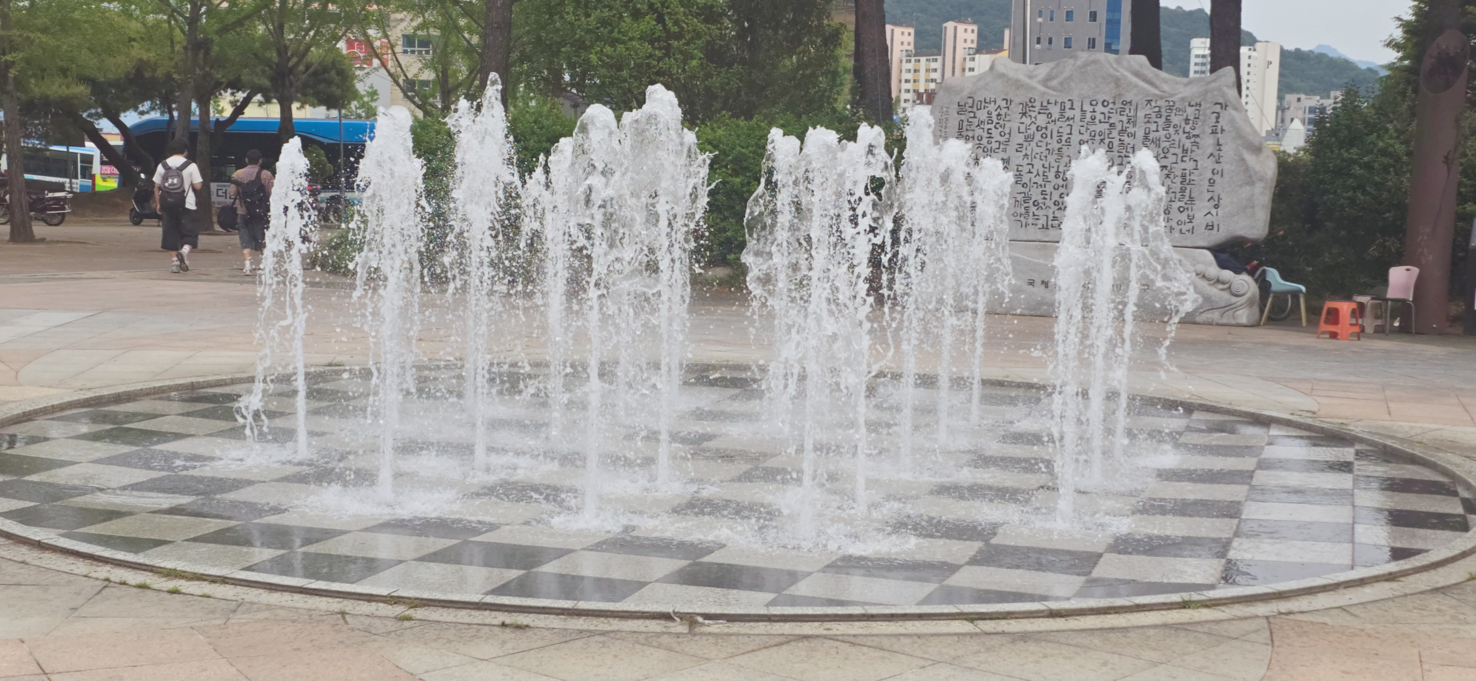 분수 앞에서 잠시 멈춘 오후, 솟구치는 물줄기처럼 마음도 치유된다. 도시 한복판의 조용한 위로, 그 순간을 기록하다. 분수는 항상 사람의 마음을 붙잡는다.도심 한복판에서 불쑥 솟아오르는 물줄기는마치 잠시 세상을 잊고 싶다는 마음을 알아챈 듯우리 앞에 시원하게 펼쳐진다. 오늘 내가 마주한 이 분수는바둑판처럼 배열된 흑백의 타일 위에자유롭게 춤추는 물방울들이었다.어디론가 바쁘게 향하던 발걸음도이 앞에선 잠시 멈추게 된다. 물을 바라보다 보면어느새 생각이 멈춘다.규칙도 없고, 예측도 되지 않지만그래서 더 자유롭고그래서 더 편안해지는 이 흐름. 분수는 아무 말 없이하루를 위로한다.“괜찮아, 너 잘하고 있어.”속삭이는 것만 같다. 저 뒤에 보이는 비석에는누군가의 글귀가 새겨져 있다.구체적인 뜻은 다 읽지 못했..