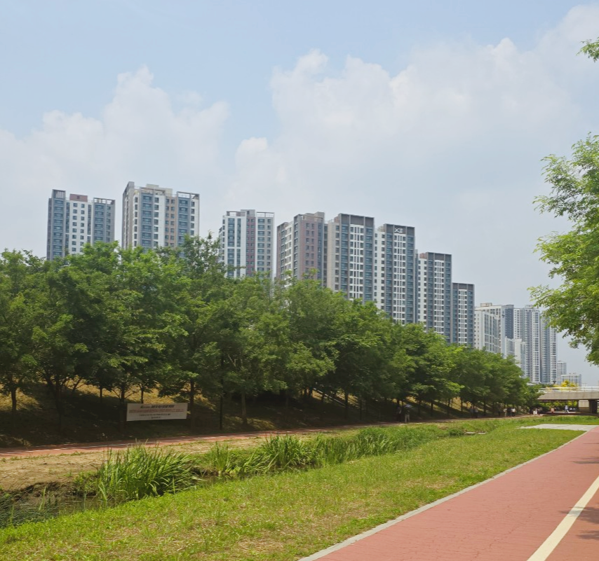 도심 속 붉은 산책길, 나무 그늘 아래서 잠시 멈춘 평화로운 순간. 일상 속 작은 쉼표가 주는 위로를 느껴본다. 붉은 산책로 위에 발을 디디는 순간, 도시의 소음은 잠시 멀어진다.양옆으로 늘어진 나무들이 햇빛을 걸러주고, 머리 위엔 구름 몇 점이 흐른다.이 길은 마치 일상의 경계를 벗어나잠시 멈춰 설 수 있는 조용한 쉼표 같다. 고층 아파트가 늘어선 배경은도시의 역동성과 사람들의 삶을 말해주지만그 아래 그림자처럼 자리 잡은 나무들은그 모든 바쁨 속에서도 자연은 여전히 우리 곁에 있다고 말해주는 듯하다. 짧은 거리지만, 이 길을 걸으면 마음속 풍경이 달라진다.도심의 질서 정연한 빌딩들이 오히려 배경이 되고내 시선은 풀과 나무, 그리고 살랑이는 바람을 향한다. 살며시 불어오는 바람에 눈을 감으면시멘트보다 ..