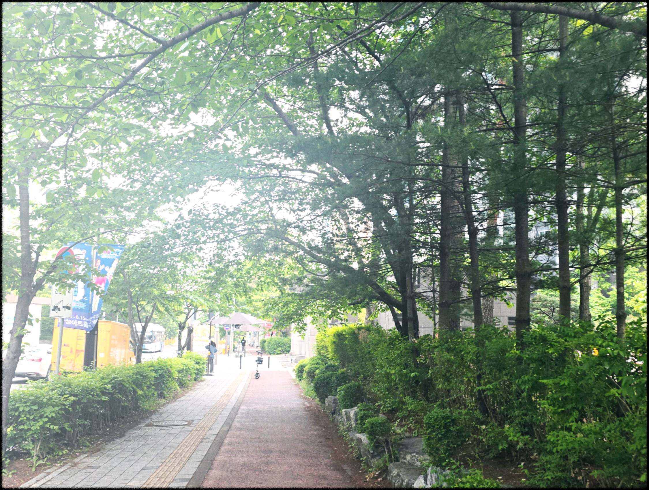 초여름의 나무 그늘 아래를 걸으며, 바쁜 일상 속에서 잠시 숨 고른 시간을 보냈습니다. 자연이 건네는 조용한 위로를 담았습니다. 생각보다 더 초록이 짙어진 날이었다.햇빛은 완전히 드러나지 않았지만, 그 덕분에 나무 그늘이 더 선명하게 느껴졌다.바람은 조용히 지나가고, 사람들은 저마다의 속도로 길을 걸었다. 이 길을 걷는 건 처음은 아니지만,오늘은 왠지 처음 보는 풍경처럼 느껴졌다.잎사귀는 촘촘히 겹쳐 있어 하늘을 가리면서도 은은한 빛을 통과시킨다.그 사이를 걷고 있자니, 마치 계절과 계절 사이 어딘가를 산책하는 기분이다. 길은 길게 뻗어 있다.오른쪽은 울창한 나무와 바위가 어우러진 자연의 공간,왼쪽은 바쁜 도심으로 이어지는 인도.그 사이 나는 그저 걷는다.누구도 방해하지 않는 시간,아무도 모르게 내게 허..